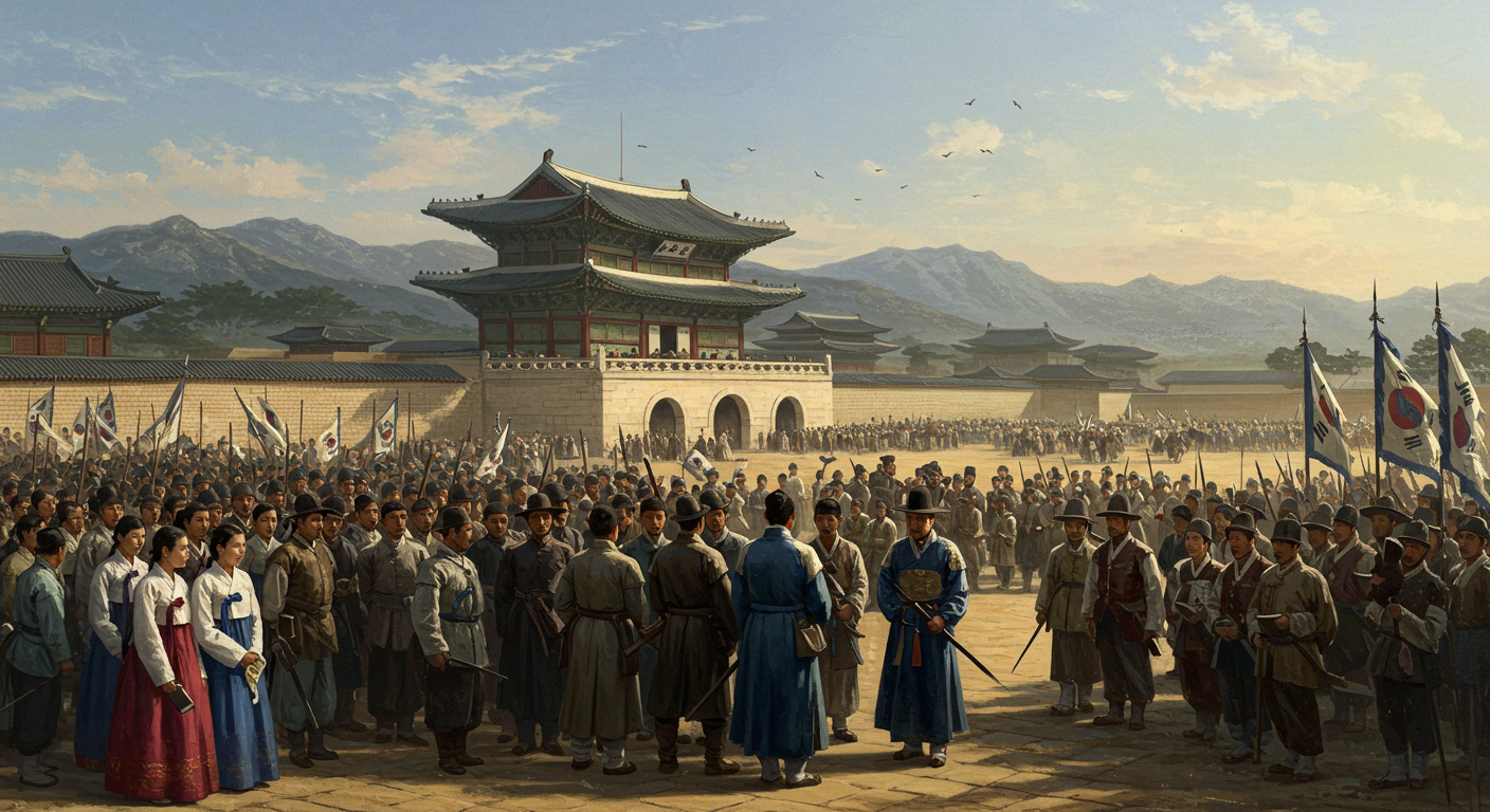 1897년은 우리 역사에서 매우 특별하고 중요한 의미를 지니는 해입니다. 수많은 외세의 간섭과 내우외환 속에서 쇠락하던 조선이 자주독립국가로서의 위상을 되찾기 위해 국호를 ‘대한제국’으로 선포하고, 고종이 황제의 자리에 오르며 새로운 시대를 열었던 해이기 때문입니다. 이는 단순한 국호 변경을 넘어, 자주적인 근대국가를 수립하려는 강력한 의지의 표출이었습니다. 당시 조선은 청일전쟁과 갑오개혁을 거치며 격변의 시기를 보내고 있었습니다.